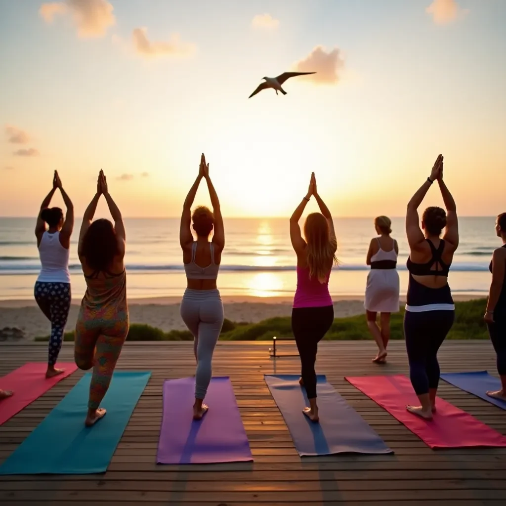 [Disfruta de la armonía entre el yoga y el sonido de las olas, creando un espacio de paz y conexión.]